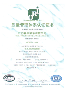 嚴格的質量保證體系,本廠嚴格按照ISO9001:要求2008技術規范,產品和植物的特點相結合,建立,實施及唇峰軸承的質量管理通過體系的有效應用系統的不斷完善,包括持續改進過程的系統,確認始終如一地提供產品符合國際標準,并滿足客戶的需求,并能夠不斷提高自身的創新能力和服務效率的工廠能力 |